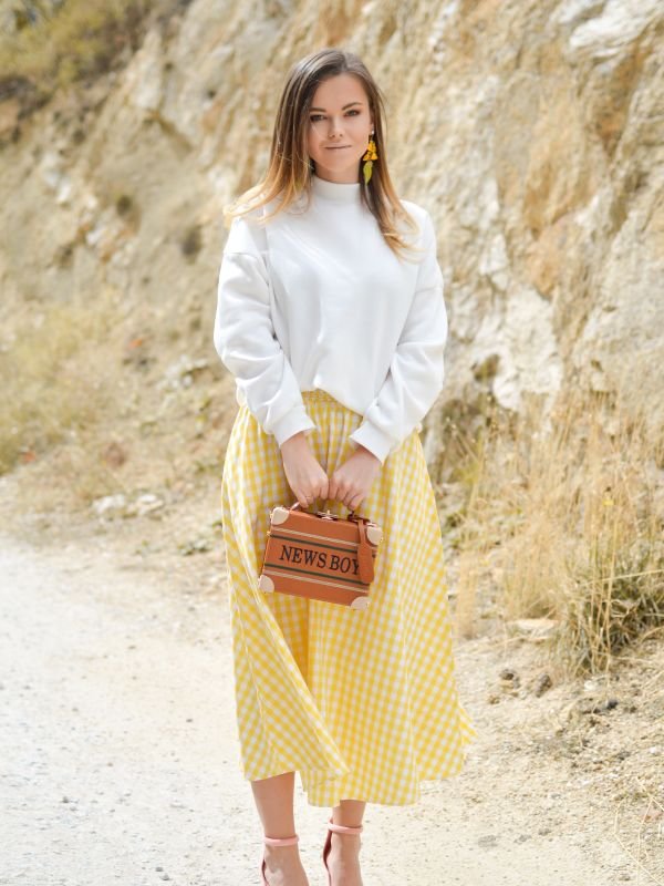 $693.00 – $699.00Price range: $693.00 through $699.00White short checkered T-shirt & skirt